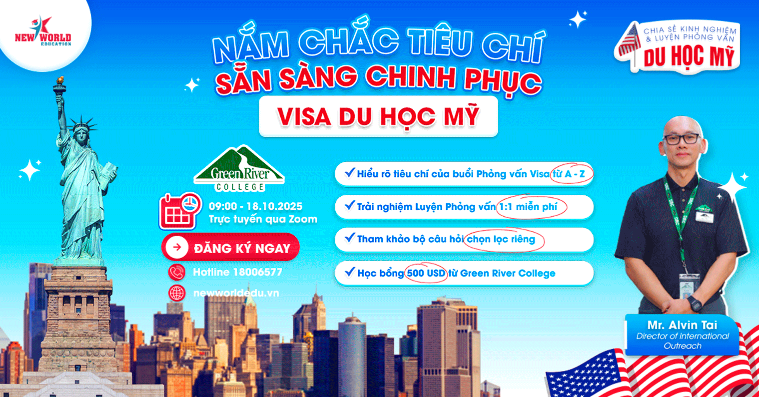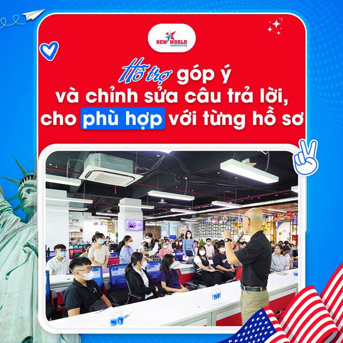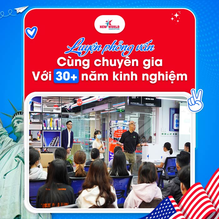 Tại New World Education các Bạn sẽ được chuyên viên tư vấn Mỹ luyện các kỹ năng trả lời phỏng vấn để thuyết phục viên chức phỏng vấn cấp cho Bạn